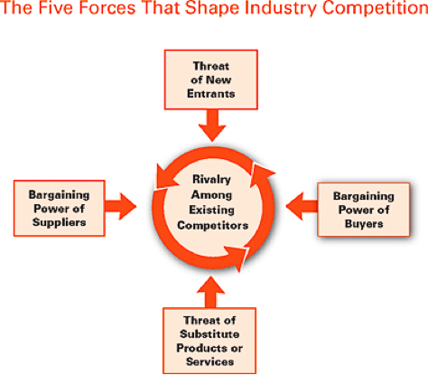 30여년전에 마이클 포터 하버드대 교수의 '5가지 경쟁요소(5 Forces)'를 제시한바 있다.